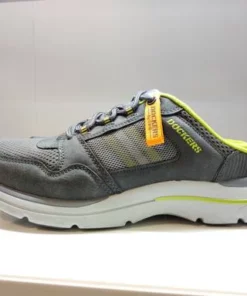 Näyttävä nauhallinen tennaripistokas, jossa runsaasti pieniä yksityiskohtia. Sivuissa verkkomateriaalia, jonka alla vihreä-valko-harmaaraidallinen paneeli. Pehmeä vuori ja irrotettava pohjallinen.