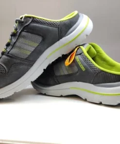 Näyttävä nauhallinen tennaripistokas, jossa runsaasti pieniä yksityiskohtia. Sivuissa verkkomateriaalia, jonka alla vihreä-valko-harmaaraidallinen paneeli. Pehmeä vuori ja irrotettava pohjallinen.