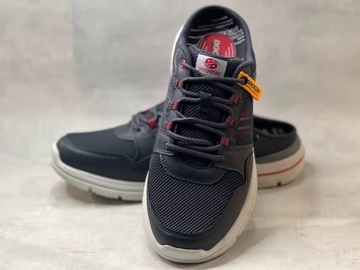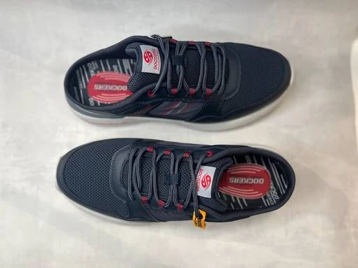 Tummansiniset Dockers pistokkaat. Näyttävät nauhalliset tennaripistokkaat, joissa runsaasti pieniä yksityiskohtia. Sivuissa verkkomateriaalia, jonka alla puna-valko-siniraidallinen paneeli. Pehmeä vuori ja vaihdettava pohjallinen, jonka tilalle sujahtaa sujuvasti omaan jalkaasti parhaiten sopiva pohjallinen.