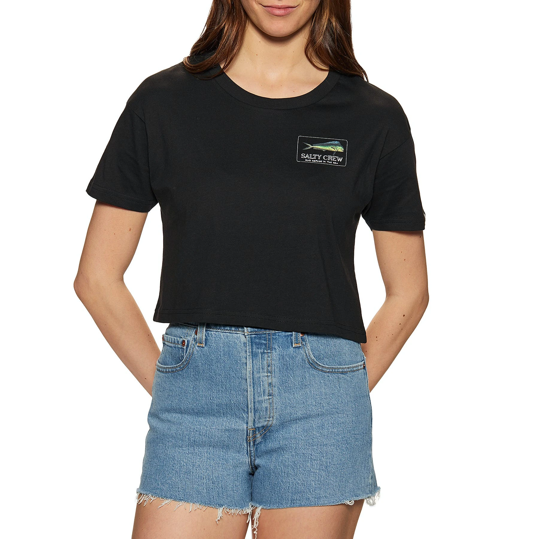 - Salty Crew graphic printed on the left side of the chest