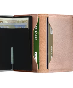Naisellisen ja kauniin Secrid lompakon kehtaat kaivaa kassalla esiin. Lompakkoon mahtuu nahkakuoriin 2-4 korttia ja seteleitä / kuitteja. Alumiiniseen sisukseen mene 4-6 korttia. Ne nostetaan esille vääntämällä alhaalla olevasta vivusta jolloin kortit nousevat viuhkamaisesti ylös. Siitä on helppo poima tarvitsemansa kortti ja painaa loput alas. Alumiinikotelossa on RFID-suojaus.Â
