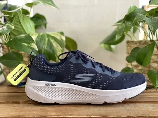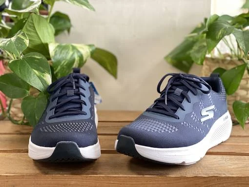 Tummansiniset Skechers Go Run Elevate lenkkarit. Vaalea pohja tuo kivasti kontrastia kengän tummansiniseen pintaan. Air Cooled Goga Mat pohjallinen.