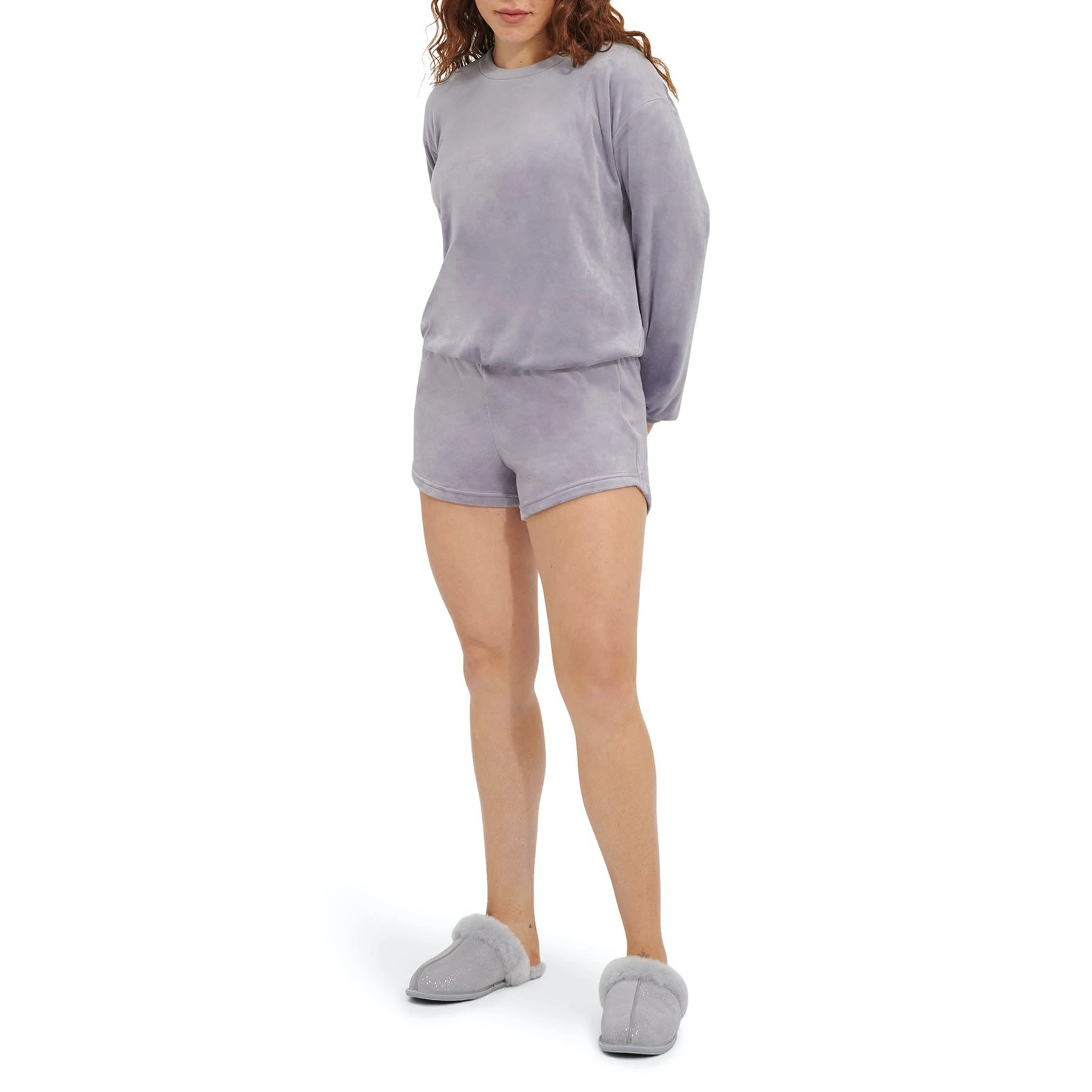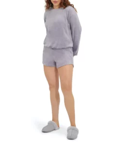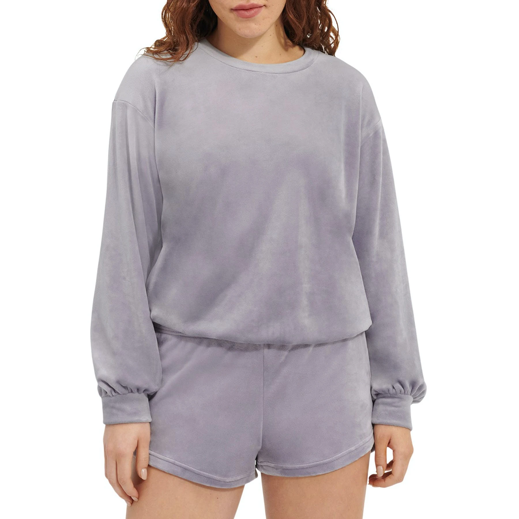 Made from velvet fleece for a heavenly-soft feel, this crewneck pullover features subtle balloon sleeves for a flattering, relaxed look. Pair with your favorite jogger-style lounge pants and fuzzy slippers.